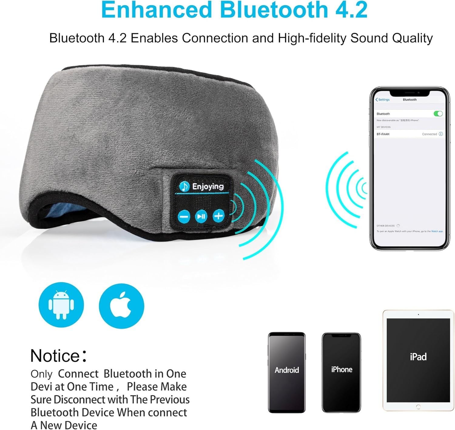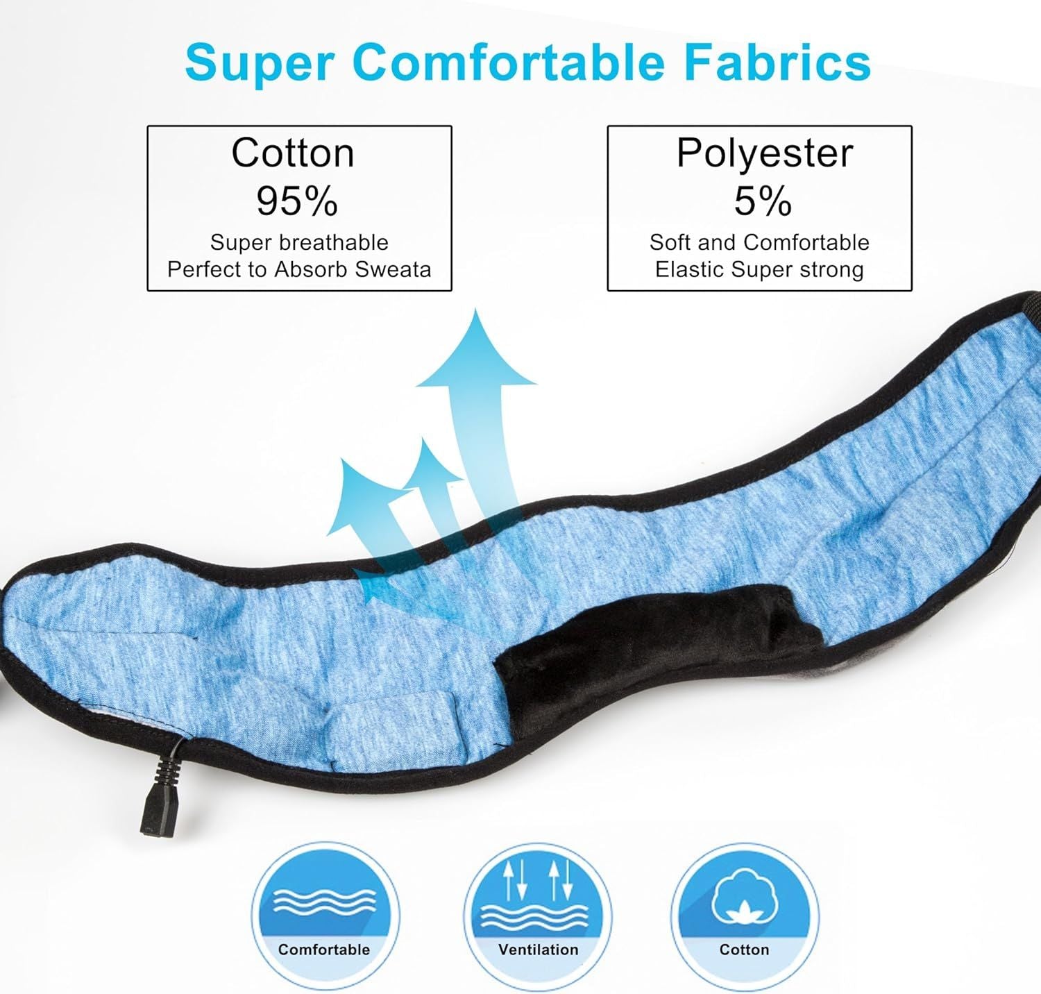 مصنوع من المخمل الفاخر والقطن المرن لملمس ناعم ولطيف على البشرة. تصميمه الذكي يسمح لك بإزالة وحدة البلوتوث بالكامل، ما يتيح لك غسل القناع بأمان وسهولة دون إتلاف أي من أجزائه الإلكترونية.